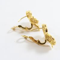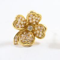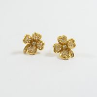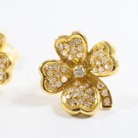 Paire de boucles d'oreilles trèfles à 4 feuilles diamantées en or 750 mil (Diam : 2 cm environ) (1 pierre accidentée). 12,6 g brut.