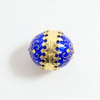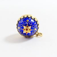 Pendentif œuf en or 750 mil émaillé bleu à décor floral et d'arabesques (Dim : 1,9 x 1,8 cm environ). 6,6 g brut.