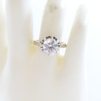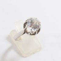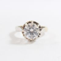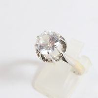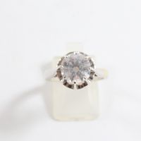 Solitaire en or gris 750 mil orné d'une pierre imitation (TDD : 55,5). 6 g brut.