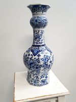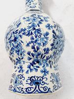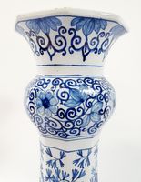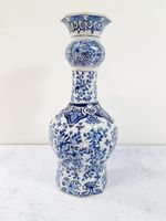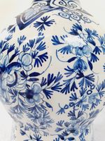 Atelier Johannes VAN DUIJN, Delft, Pays-bas : Vase balustre à double renflement en faïence émaillée à décor bleu et blanc de frises de fleurs et de lambrequins dans le goût de la Chine. Signé sous la base. Hauteur : 39,8 cm. Minuscules sauts d'émail et égrenures.