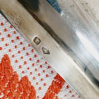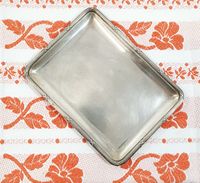 BOULENGER, vers 1900 : Petit plateau ou plateau à courrier rectangulaire en argent uni 950 mil. à filets rubanés. Minerve et poinçon de maître. Dimensions : 13,5 x 18 cm. Poids : 190,1 g. Légères rayures d'usage.