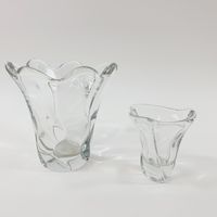 DAUM France, vers 1960-1970 : Deux vases à col évasé en cristal. Signés. Hauteurs : 17,5 et 10,5 cm. Petit éclat à la base du plus grand.