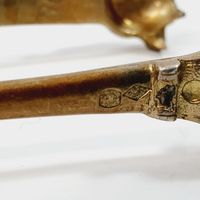 Lot de 3 pièces en argent vers 1900 : - Pince à sucre à pattes de lion en vermeil 800 mil à décor guilloché, chiffrée, poinçon Minerve 2ème titre et poinçon de Maître de Jean BARTHELEMY (Poids : 45 g.). - Cuiller à sucre en argent et vermeil 800 mil. à décor guilloché, ajouré et torsadé, poinçon de Maître O (Poids : 19,5 g. , exemptée selon article 524 bis al. A du CGI ). - Cuiller à thé en argent 950 mil. vers 1900, décor à filets, agrafes feuillagées et cuilleron gravé d'un bouquet de fleurs champêtres, poinçon sanglier et poinçon de maître Ravinet d'enfert (Poids: 16,2 g.). Poids total : 80,7 g. Très légère usure d'usage.