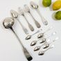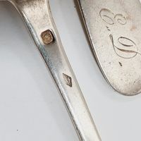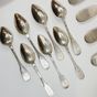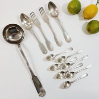 Lots de couverts de pensionnaire XIXe siècle : en argent uni 950 mil. modèle uniplat comprenant : - 1 louche (longueur : 35 cm), - 2 grandes fourchettes, - 2 grandes cuillers, - 7 petites cuillers, Poinçons Minerve, Départements 1819-1838, Michel Ange Paris 1819-1838. Poinçons de différents orfèvres dont Louis-Patient COTTAT (actif 1831-1876) et Charles-Alexandre LAVALLEE (actif à partir de 1855). Chiffrés de monogrammes ou patronymes. Poids total : 645,9 g.