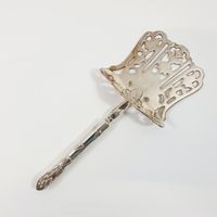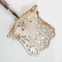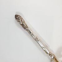 Pelle à asperges ajourée en métal argenté, le manche à motif d'asperge. Non poinçonnée. Longueur : 24 cm.