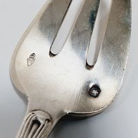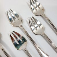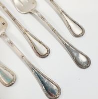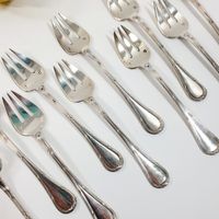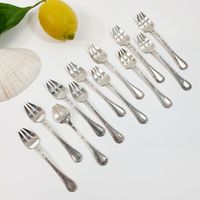 PUIFORCAT, début XXe siècle : Suite de 12 fourchettes à huitres en argent 950 mil. modèle filets rubanés. Poinçon Minerve et poinçon de maître de la maison. Poids : 296,5 g.