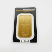 ARGOR HERAEUS Lingotin : de 50 g. en or 999,9 mil, Melter Assayer, numéroté 216469. Sous blister numéroté.