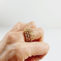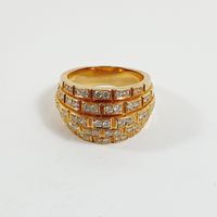 Bague bandeau : en or 750 mil. ornée de 5 lignes de diamants brillantés en espalier (TDD : 56) (Largeur : 2 cm environ). 14,2 g. brut