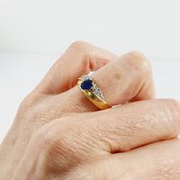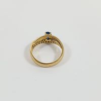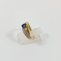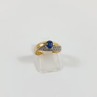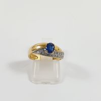 Bague croisée : deux ors 750 mil. centrée d'un saphir ovale rehaussée d'un pavage de diamants brillantés. (TDD : 51) (légère déformation). 3,6 g. brut.