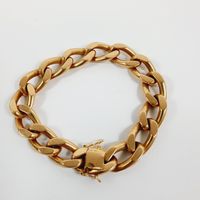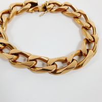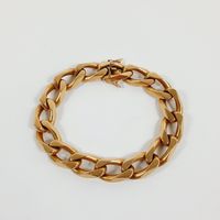 Bracelet : en or 750 mil. à maillons gourmette, fermoir cliquet et double huit de sécurité (Longueur : 20 cm, largeur : 1 cm environ). 83,1 g.