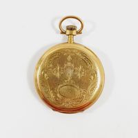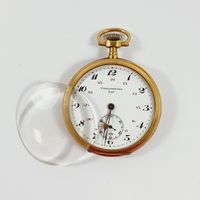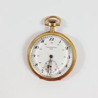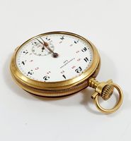 Montre de gousset Chronomètre LIP : en or 750 mil, cadran émaillé blanc à chiffres arabes, petite seconde à 6 H, dos guilloché à décor floral, mouvement mécanique, cuvette en or 750 mil. (Diamètre : 48 mm environ) (Usures, aiguilles déformées, verre détaché). 77,7 g. brut.