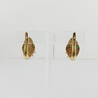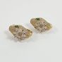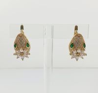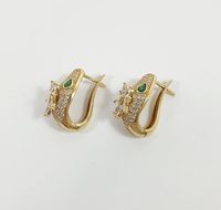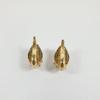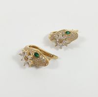 Paire de boutons clips d'oreilles Serpent : en or 750 mil., la tête ornée d'une fleur, serties d'un pavage de pierres imitation. (Hauteur : 2,4 cm environ). 12,9 g. brut