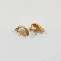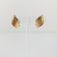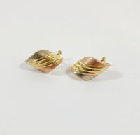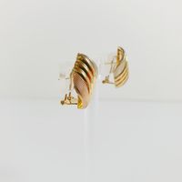 Paire de boutons clips d’oreilles : 3 ors 750 mil. à décor godronné. Systèmes pour oreilles percées et raquettes. (Hauteur : 2,5 cm environ). 6,6 g.