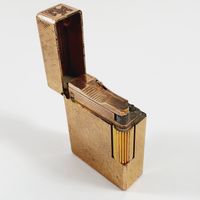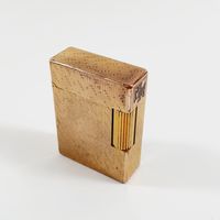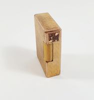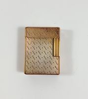 S.T. DUPONT : Briquet en métal doré guilloché. Signé et numéroté. Chiffré. (Dimensions : 4,7 x 3,5 cm environ) (Usures)