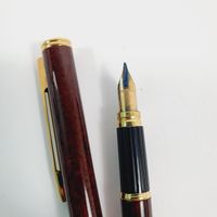 WATERMAN : Stylo-plume en résine à effet marbré et métal doré, système à cartouche, plume en or 750 mil. (Exempté : art. L833-2 du CGI). 23,8 g. brut.