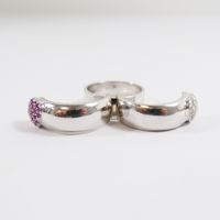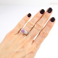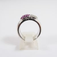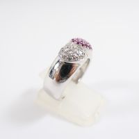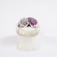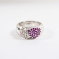 Bague "cœurs" ouvrante à message : en or gris 750 mil. ornée de deux cœurs sertis de diamants taille brillant et de saphirs roses, chiffrée "Je t'aime" à l'intérieur (TDD : 51) (largeur : 7,7 mm environ) (rhodiage à prévoir). 12,3 g. brut