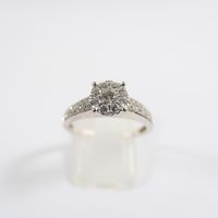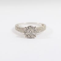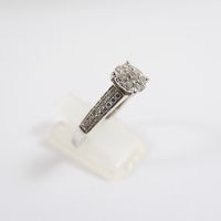 Bague "illusion" : en or gris 750 mil. sertie de diamants taille brillant (TDD : 56) (diamètre : 7 mm environ). 3,5 g. brut
