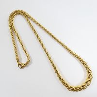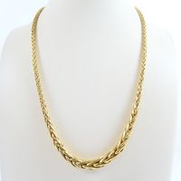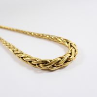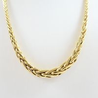 Collier : en or 750 mil. à maille palmier en chute (longueur : 45,5 cm environ) (largeurs : de 3 à 6 mm environ) (petits chocs). 14,6 g.
