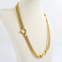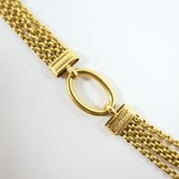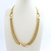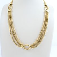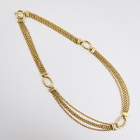 Collier : en or 750 mil. composé de 4 chaînes à maille jaseron alternées de maillons ovales, travail portugais (longueur : 47 cm environ) (largeur maillon : 12 mm environ). 45,3 g.