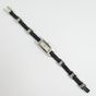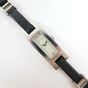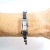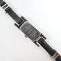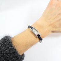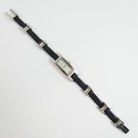 GUCCI, réf. 3900L : Montre-bracelet en acier, boîtier rectangulaire, cadran nacré, index diamantés, mouvement à quartz, bracelet en cuir noir alterné de maillons en acier, signée et numérotée (dimensions : 34 x 12 mm environ) (longueur : 18 cm environ) (légères rayures).