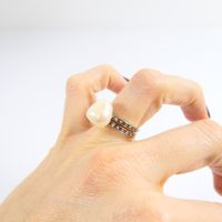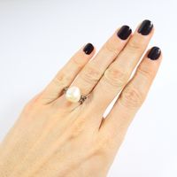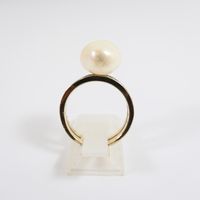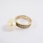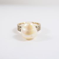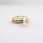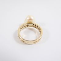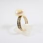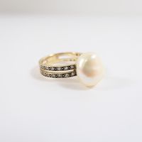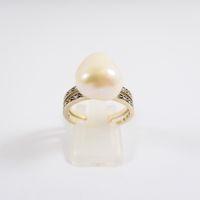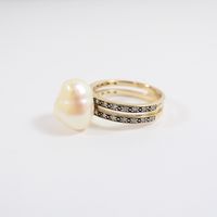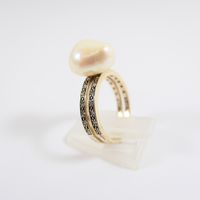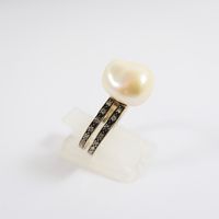H. STERN "Collection Pearl", Bague : en or 750 mil. jaune et noirci ornée d'une perle baroque, épaulée de diamants taille brillant (TDD : 55) (usures, petits éclats). 6 g. brut
