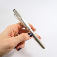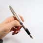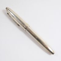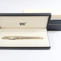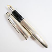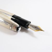 MONTBLANC "Meisterstück" : Stylo-plume avec habillage en argent 925 mil. à décor rainuré, plume en deux ors 750 mil., système de remplissage à pompe, accompagné de son écrin, de sa boîte et d'un livret. 48,5 g. brut [Exempté : art. L833-2 du CGI]