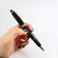 MONTBLANC "Meisterstück": Surligneur en résine noire et métal doré, signé et numéroté, accompagné de son écrin. Etat neuf.