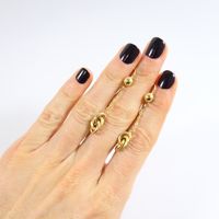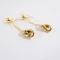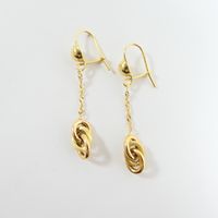 Paire de pendants d'oreilles : en or 750 mil. composé chacun d'une fine chaîne à maille singapour retenant un motif entrelacé (longueur : 4,8 cm environ). 2,1 g.
