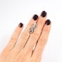 Pendentif "tresse" : en argent 800 mil. serti de diamants taille brillant blancs et bleus (dimensions : 23 x 9,8 mm environ) (éclats). 1,7 g. brut