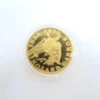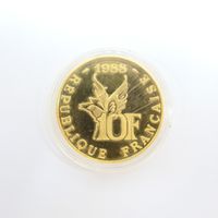 Pièce de monnaie : de 10 FRF en or 920 mil. commémorant le centenaire de la naissance de Roland GARROS, accompagné de son écrin et de son certificat. 12 g.