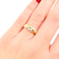 Bague mouvementée : deux ors 750 mil. Centrée d'un diamant brillanté. (TDD : 55). 4 g. brut.