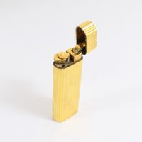 CARTIER : Briquet en métal doré rainuré. Signé et numéroté. (Longueur : 7 cm environ).