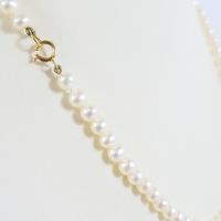 Collier d'un rang de perles de cultures : (diam. : 4,9 mm environ). Fermoir en or 750 mil. (Longueur : 38 cm environ). 11,7 g. brut.