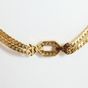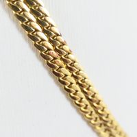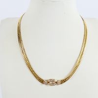 Collier en or 750 mil. À deux rang de maile anglaise centrée d'un motif géométrique serti de diamants brillantés. Fermoir cliquet à huit de sécurité. Travail français. (Longueur : 37 cm environ). 24,5 g. brut.