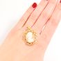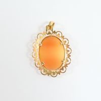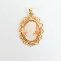 Pendentif : en or 750 mil. Orné d'un camé à profil féminin. Travail français. (Longueur : 3,7 cm environ). 3,9 g. brut.