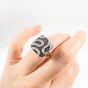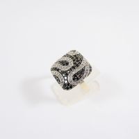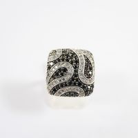 Bague à chaton carrée : en or gris 750 mil., pavé de petits diamants noirs et blancs. (TDD : 51). Poids brut : 6g