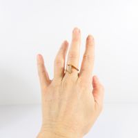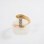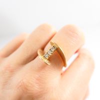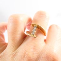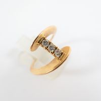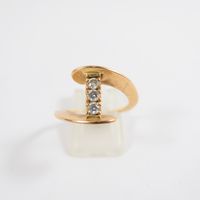 Bague mouvementée : en or 750 mil., centrée de 3 diamants taille brillant (0,05 carats chacun) (TDD 53,5). Poids brut : 4g