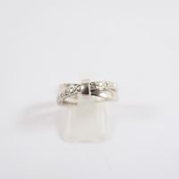 Bague nœud : en or gris 750 mil., rehaussée d'une ligne de petits diamants taille 8/8. (TDD : 54). Poids brut : 3,3g.