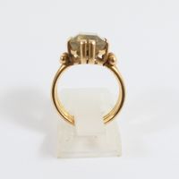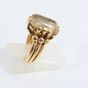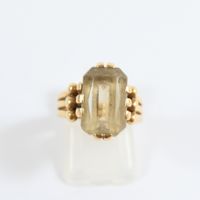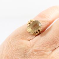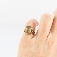 Bague : à trois fils d'or en or 750 mil., centrée d'une aigue marine (égrisure) taille ovale sertie griffe épaulée de trois petites billes d'or. (TDD : 47). Poids brut : 6,7g