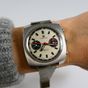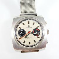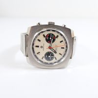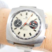 CERTINA, "Argonaut Chrono" : Bracelet - montre en acier, boitier octogonale à pans coupé (dim. : 40 mm environ) (Petits chocs, rayures), cadran circulaire à fond blanc, deux sous compteurs. Mouvement manuel à remontage mécanique. Bracelet à maille tressée. (Tours de poignet : 18,4cm).