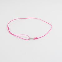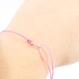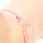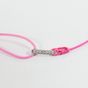 GUERIN : Bracelet cordon de couleur rose centré d'une petite barrette en or gris 750 mil., ornée de petits diamants taille brillant. Signé. Poids brut : 0,3g [Ex-ART L833 -2 du code de commerce]