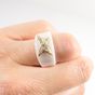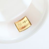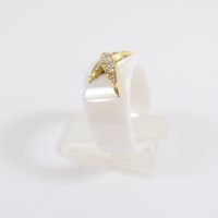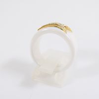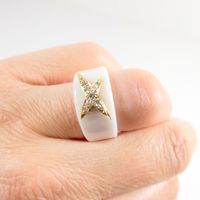 MAUBOUSSIN, "Etoile du démon" : bague en céramique blanche rehaussée d'une étoile en or 750 mil., sertie de diamant taille brillant. (TDD : 55). Poids brut : 8,4g. Chaîne figaro gourmette en or 585 mil., retenant un pendentif poisson articulé en or 750 mil., les yeux ornés de billes de chrysoprase. (Longueur chaîne: 51cm environ - Dimensions du poisson : Longueur : 9cm environ - largeur : 4cm environ). Poids brut : 87,2 [Ex-ART L833 -2 du code de commerce]