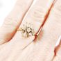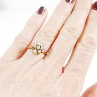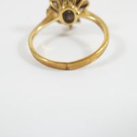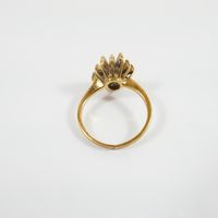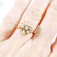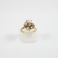 Bague : en or 750 mil. (diamants taille brillant et baguette) (TDD : 50) (monture coupée, pierre manquante, accident). 3,5 g. brut.