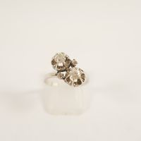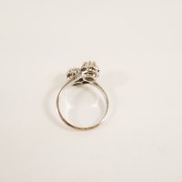 Bague "toi & moi" : en or gris 750 mil. sertie de diamants taille ancienne (2 x 0,18 ct environ) (TDD : 55). 3,6 g. brut.