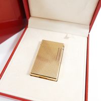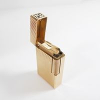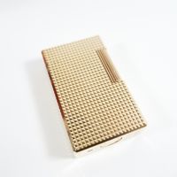 DUPONT : Briquet en métal doré à décor de pointe de diamant, signé et numéroté (dimensions : 5,8 x 3,5 x 1,4 cm environ) (chiffré MS). Avec son écrin et boîte.