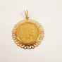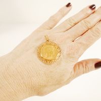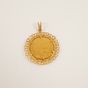 Pendentif : en or 750 mil. orné d'une pièce de 20 FRF en or 900 mil. (diamètre : 3,2 cm). 9,6 g.
