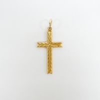 A. AUGIS, Pendentif croix : en or 750 mil., travail français, poinçon de la Maison (dimensions : 3,1 x 1,5 cm environ) (rayures). 2,7 g.