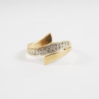 Bague : en or 750 mil. sertie de diamants taille 8/8, travail français (TDD : 55) (largeur : 12,2 mm environ) (petits éclats, déformation). 2,7 g. brut