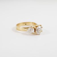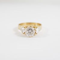 Bague solitaire : en or 750 mil. ornée d'un diamant taille brillant de 0,95 carat environ, épaulé de deux diamants taille poire de 0,30 carat environ chacun (TDD : 51). 4,5 g. brut