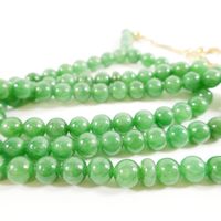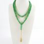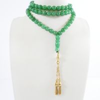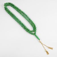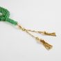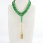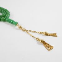 Chapelet dit "Tasbih" : en perles de jade teint montées sur fil, retenant un pendant à pompons en or 750 mil. (longueur : 80 cm environ) (longueur pendant : 7 cm environ) (diamètre perles : 8 mm environ). 80 g. brut